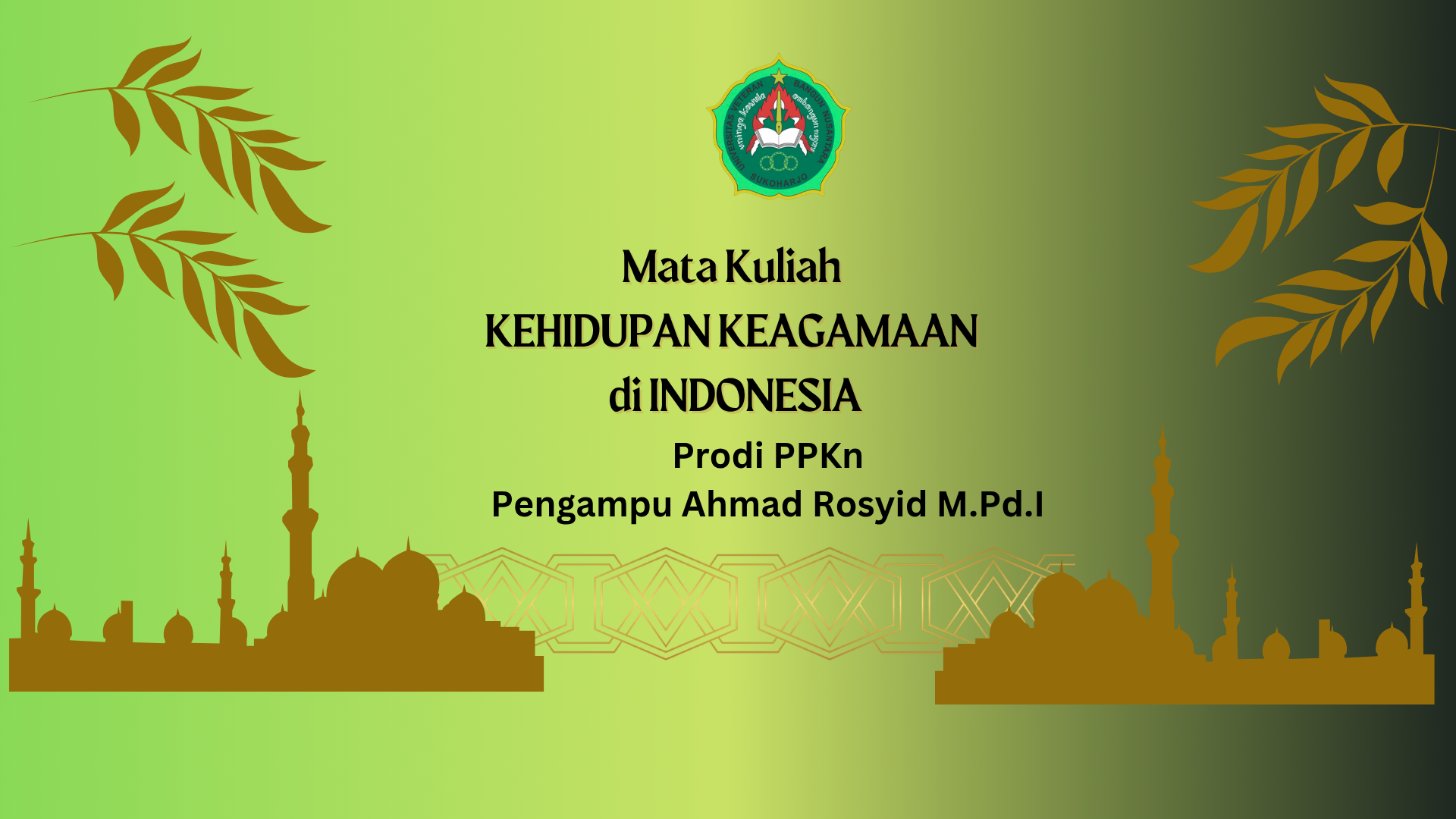 Mata kuliah ini mengkaji secara komprehensif dinamika kehidupan beragama di Indonesia dalam bingkai Negara Kesatuan Republik Indonesia (NKRI). Fokus utama perkuliahan adalah pada pemahaman tentang keberagaman agama, aliran kepercayaan, hubungan antaragama, kebijakan negara dalam mengelola kerukunan umat beragama, serta tantangan dan solusi terhadap konflik bernuansa agama. Mata kuliah ini juga mengintegrasikan nilai-nilai Pancasila, terutama sila pertama (Ketuhanan Yang Maha Esa), sebagai landasan utama kehidupan keagamaan yang harmonis di tengah masyarakat majemuk